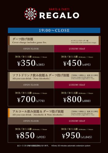 19:00~CLOSEまでの料金になります。